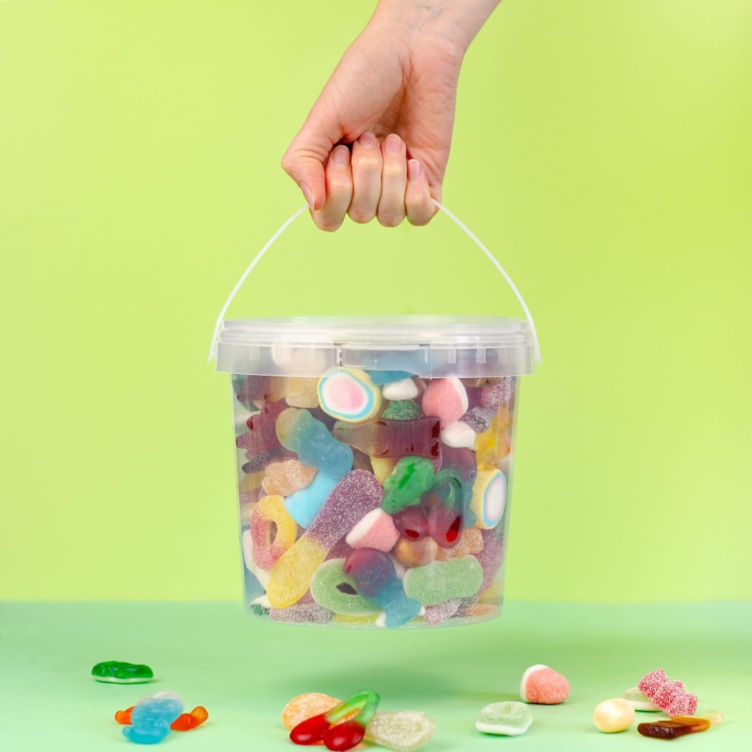 The colourful candy mix consists of both sweet fruit gums and sour, pack a few soft marshmallows and you have a mix in no time where everyone can find something that tastes to them. Throwing a party where everyone agrees with the snacks has never been so easy. Simply close the bucket again when the snacking is over. So the sweets stay fresh longer.